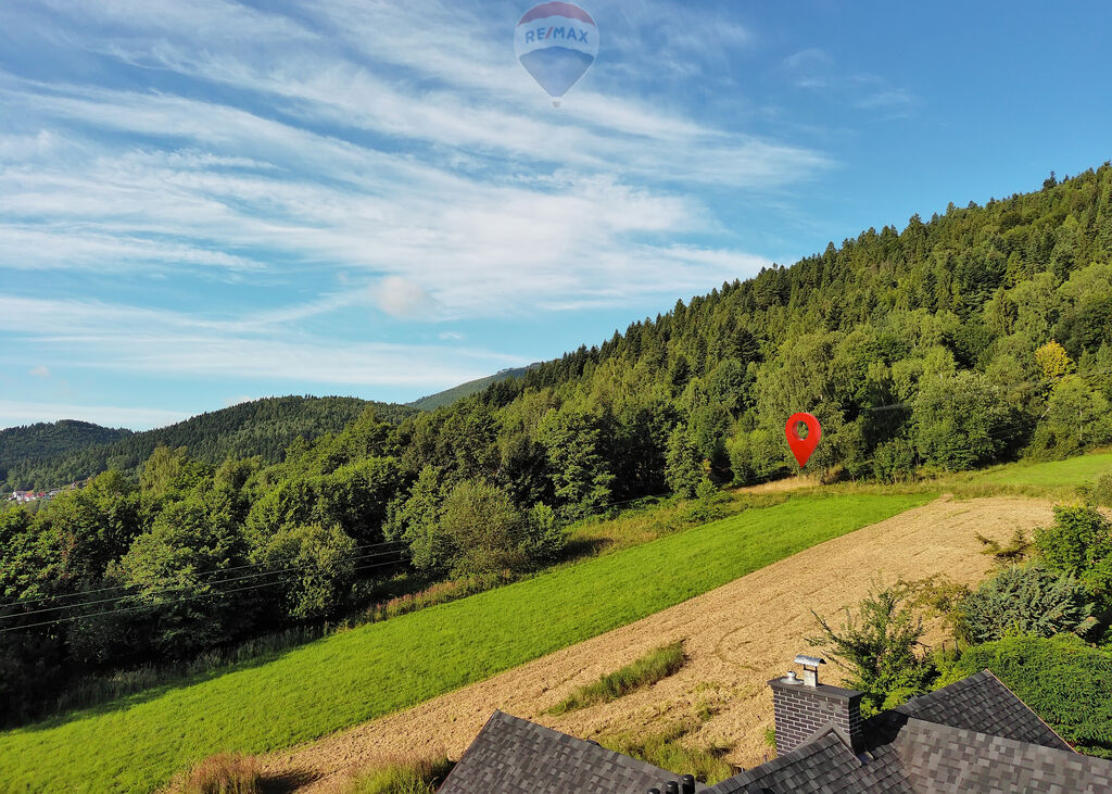 w Kotlinie Żywieckiej z pięknymi widokami na okoliczne wzgórza i